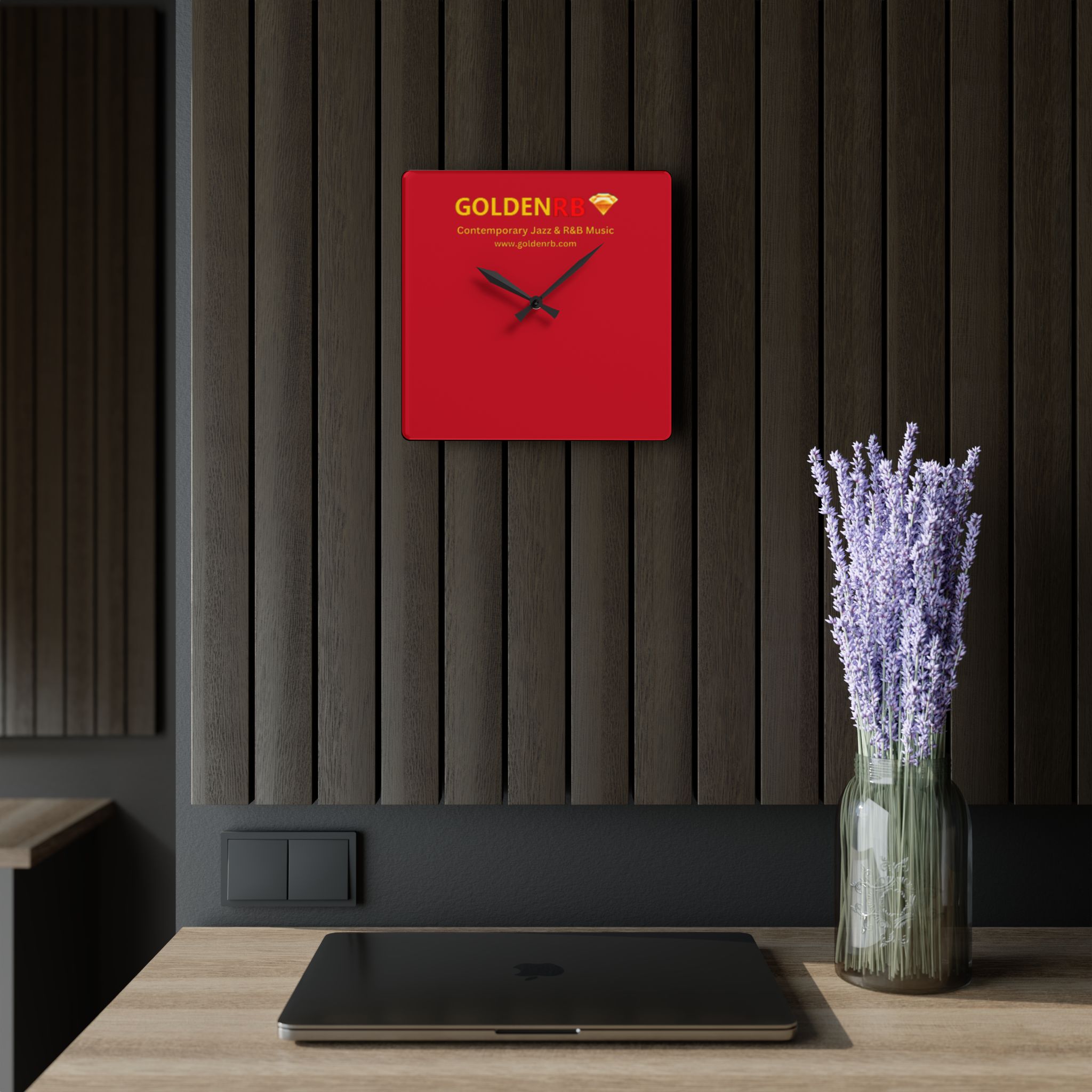 Add a stylish, music-inspired touch to your space with this GoldenRB Acrylic Wall Clock. Perfect for jazz and R&B lovers, this clock blends function with modern design.